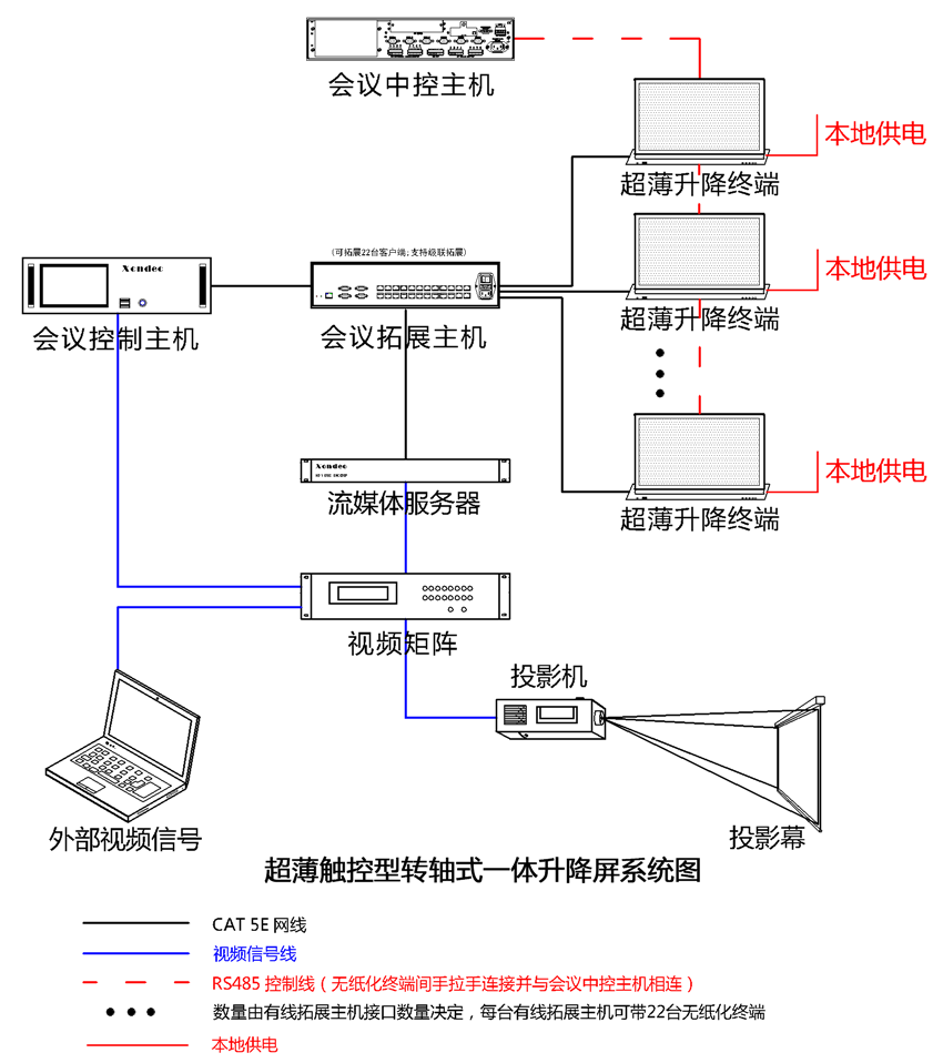 3、系統(tǒng)可以擴(kuò)展第三方網(wǎng)絡(luò)中控,從而實(shí)現(xiàn)任意會(huì)議終端(經(jīng)過(guò)授權(quán))隨時(shí)對(duì)周邊設(shè)備進(jìn)行控制;第三方中控可通過(guò)RF/RS 485協(xié)議對(duì)升降進(jìn)行統(tǒng)一控制。