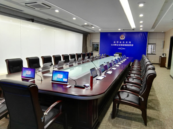 金華公安局管理嚴(yán)格,各個(gè)部門要各執(zhí)其責(zé),故需在會議上講究效率。經(jīng)再三考慮,決定采用我們公司的無紙化升降會議系統(tǒng)及電子桌牌。在G20的峰會期間,由于會議上各司其職,分工明確,金華公安局的表現(xiàn)頗為大家贊賞。